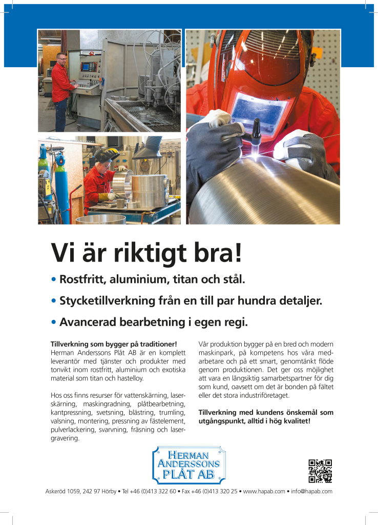 Vi är specialister inom rostfritt, aluminium och titan men vi jobbar inom de flesta metaller. Det kan vara stål, olika typer av hastelloy-legeringar, koppar och mässing för att nämna några. På grund av namnet Herman Anderssons Plåt får vi ofta frågan om vi jobbar med byggnadsplåt, det gör vi dock inte.